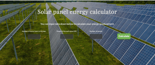 This application calculates the energy accumulated using solar panels in a simple manner. Just input the number of panels, their strength, and sunny hours in the day and hit calculate. You can visit this website here.